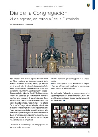 ¡Nuestro Colegio!! ¡Nuestra Capilla!!! Palabras que re- Junto a la Madre Paulina, dimos gracias por toda su obra