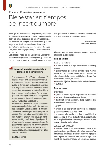 seguir sosteniendo los aprendizajes desde casa.” Directora Primaria