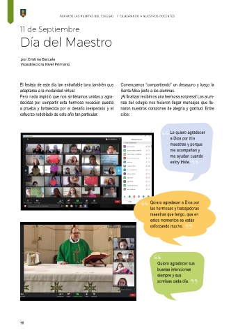 decidas por compartir esta hermosa vocación puesta nas del colegio nos hicieron llegar mensajes que lle-