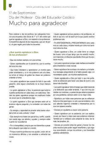 Para celebrar el día del profesor, las catequistas hicie- • Quiero agradecer porque gracias a mis profesores, sé