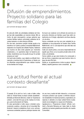 En este año 2020, las actividades solidarias del Cole- Se buscó así colaborar con la difusión de servicios y/o
