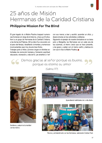 Trabajan junto a niñas y jóvenes ciegas en distintas ac- con que lo hizo la Madre Paulina. g
