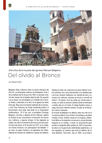 Un año más tarde, el 20 de junio de 1821, se le rindie- escribir su biografía. Mitre publicó en 1857 un importan-