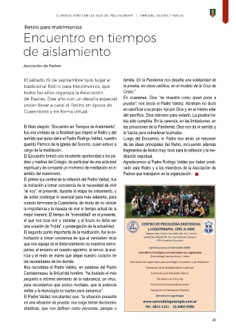 El título elegido: “Encuentro en Tiempos de Aislamiento”, las privaciones de la Pandemia, Dios nos da el sentido y