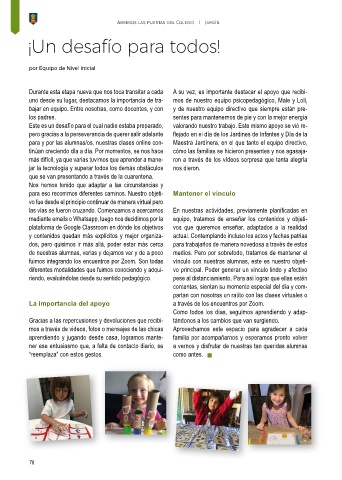 uno desde su lugar, destacamos la importancia de tra- mos de nuestro equipo psicopedagógico, Male y Loli,