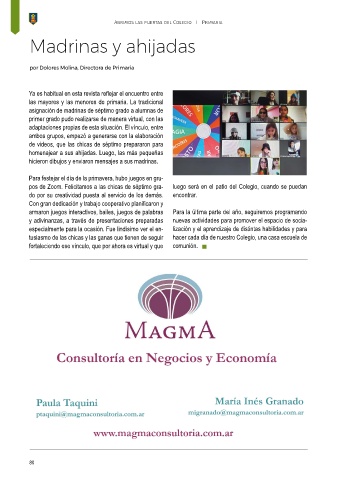 pos de Zoom. Felicitamos a las chicas de séptimo gra- luego será en el patio del Colegio, cuando se puedan