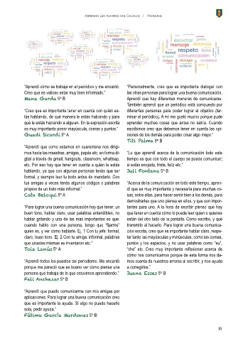 mos hacia las maestras, amigas, papás etc, en forma di- “Lo que aprendí acerca de la comunicación todo este