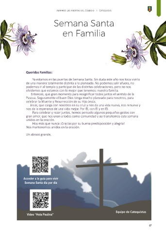 Abrimos las puertas del Colegio I Catequesis Semana Santa en Familia Acceder a la guía para vivir Semana Santa día por día Video “Hola Paulina” 87