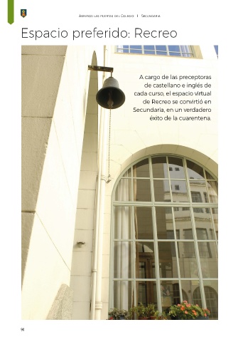 Abrimos las puertas del Colegio I Secundaria Espacio preferido: Recreo A cargo de las preceptoras de castellano e inglés de cada curso, el espacio virtual de Recreo se convirtió en Secundaria, en un verdadero éxito de la cuarentena. 90