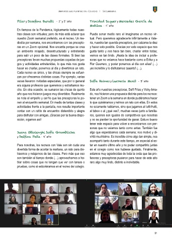 se nota el empeño y cariño que las preceptoras le po- tener un Zoom a la semana en donde pudiéramos hacer